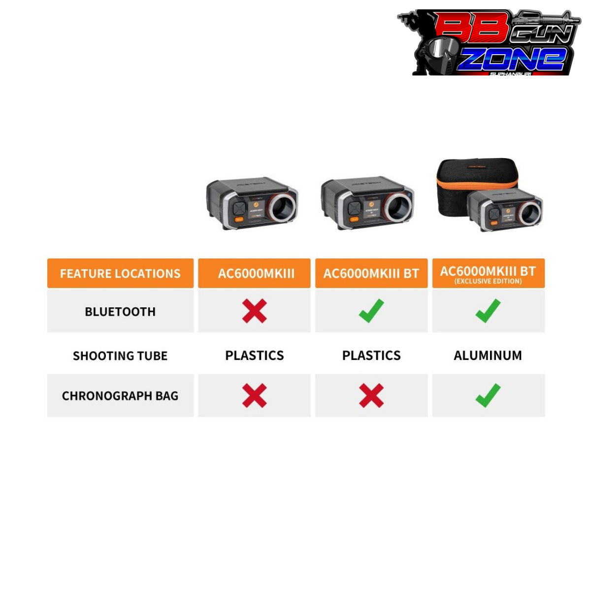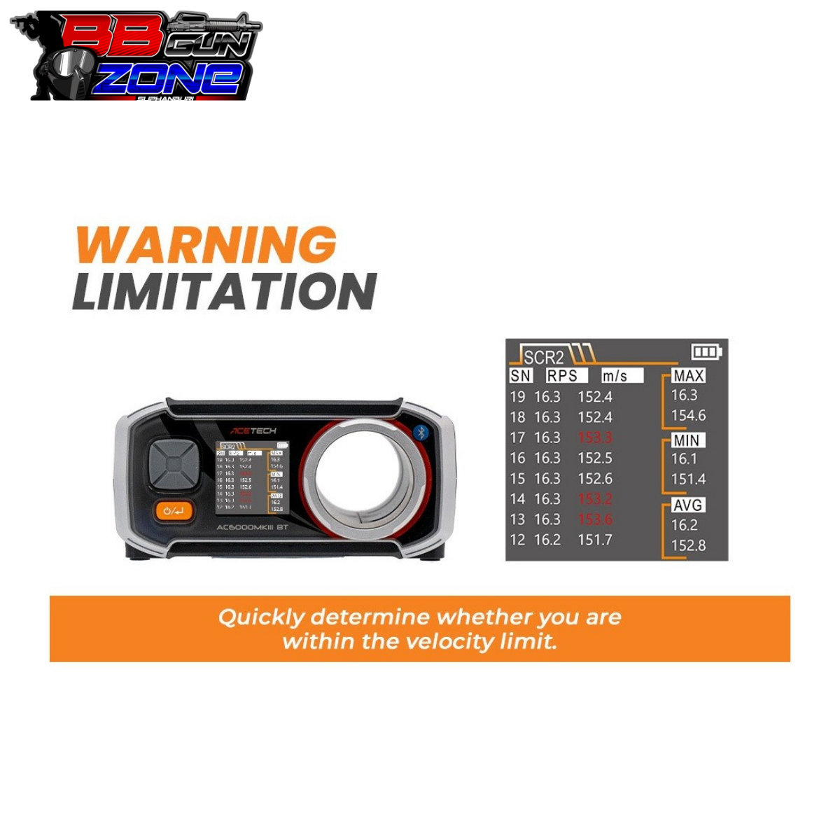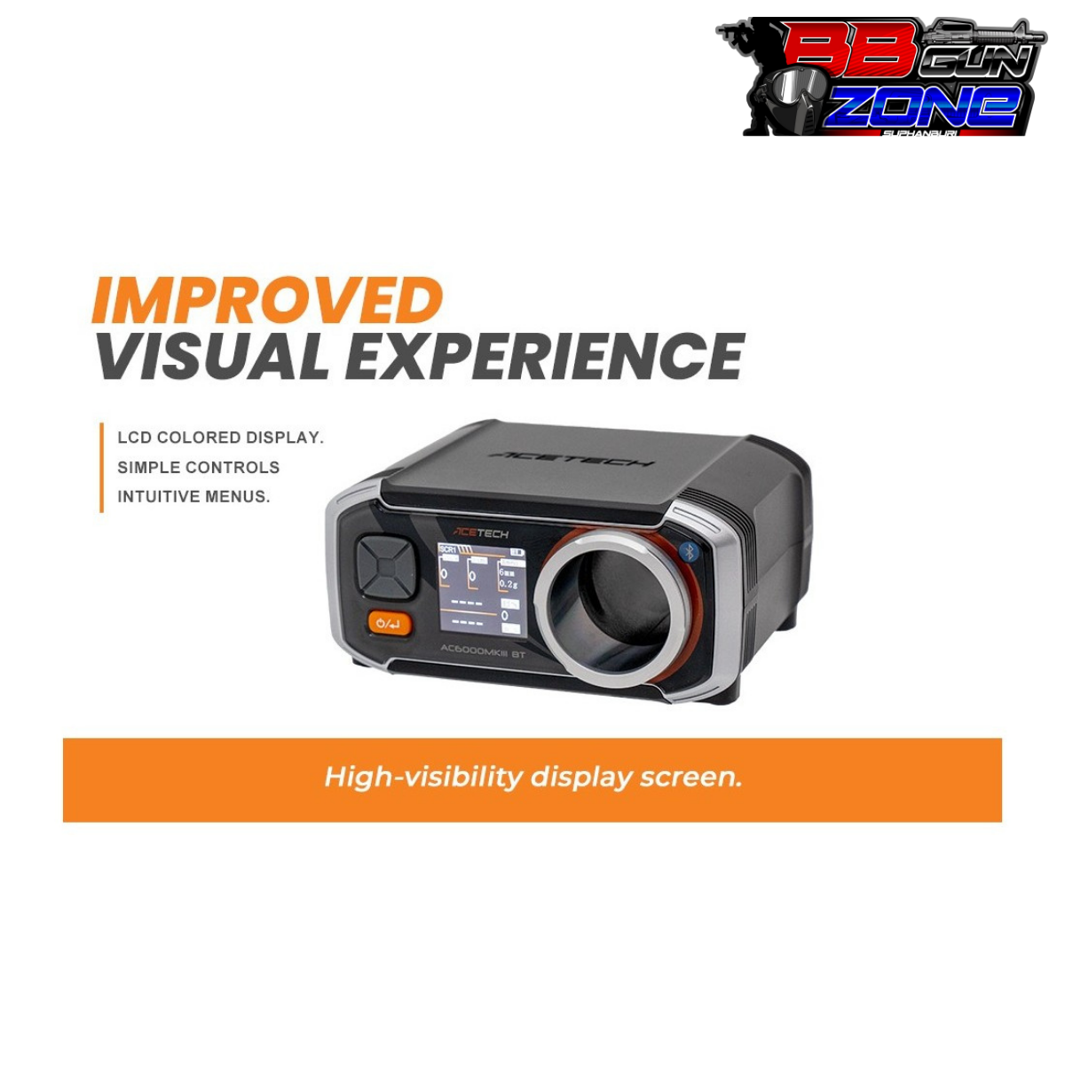 AC6000 BT เป็นเครื่องวัดความเร็วกระสุนที่มีคุณภาพและความแม่นยำสูง อินเทอร์เฟซที่ใช้งานง่ายด้วย OLED ขนาด 128*128 พิกเซลแสงสีขาว ตอนนี้มีแอพที่ควบคุมด้วย Bluetooth ใหม่