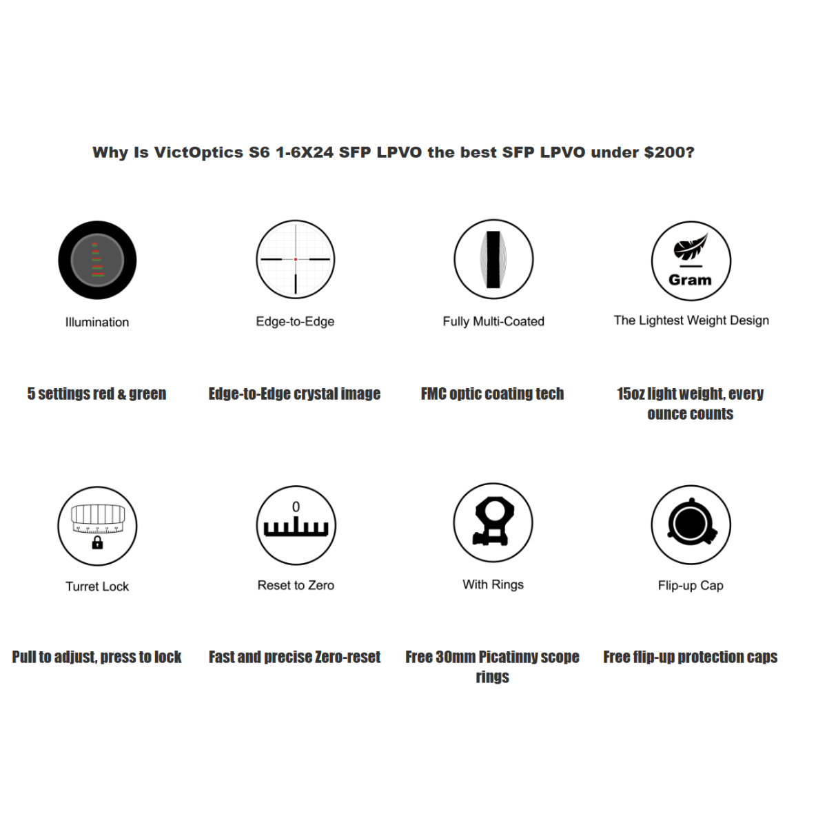 Except for its quality, the price is also competitive. If you are looking for the best 1-6x LPVO under $200, the S6 type is a good choice.