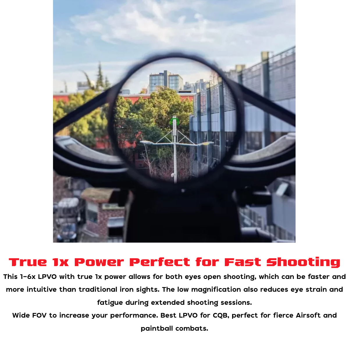 LPVO Supports Both-Eyes-Open Shooting with True 1x Power and Expansive 6x Zoom Ratio