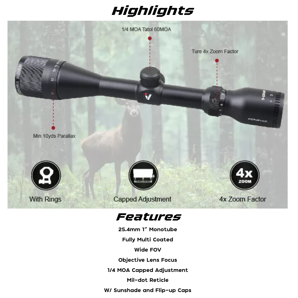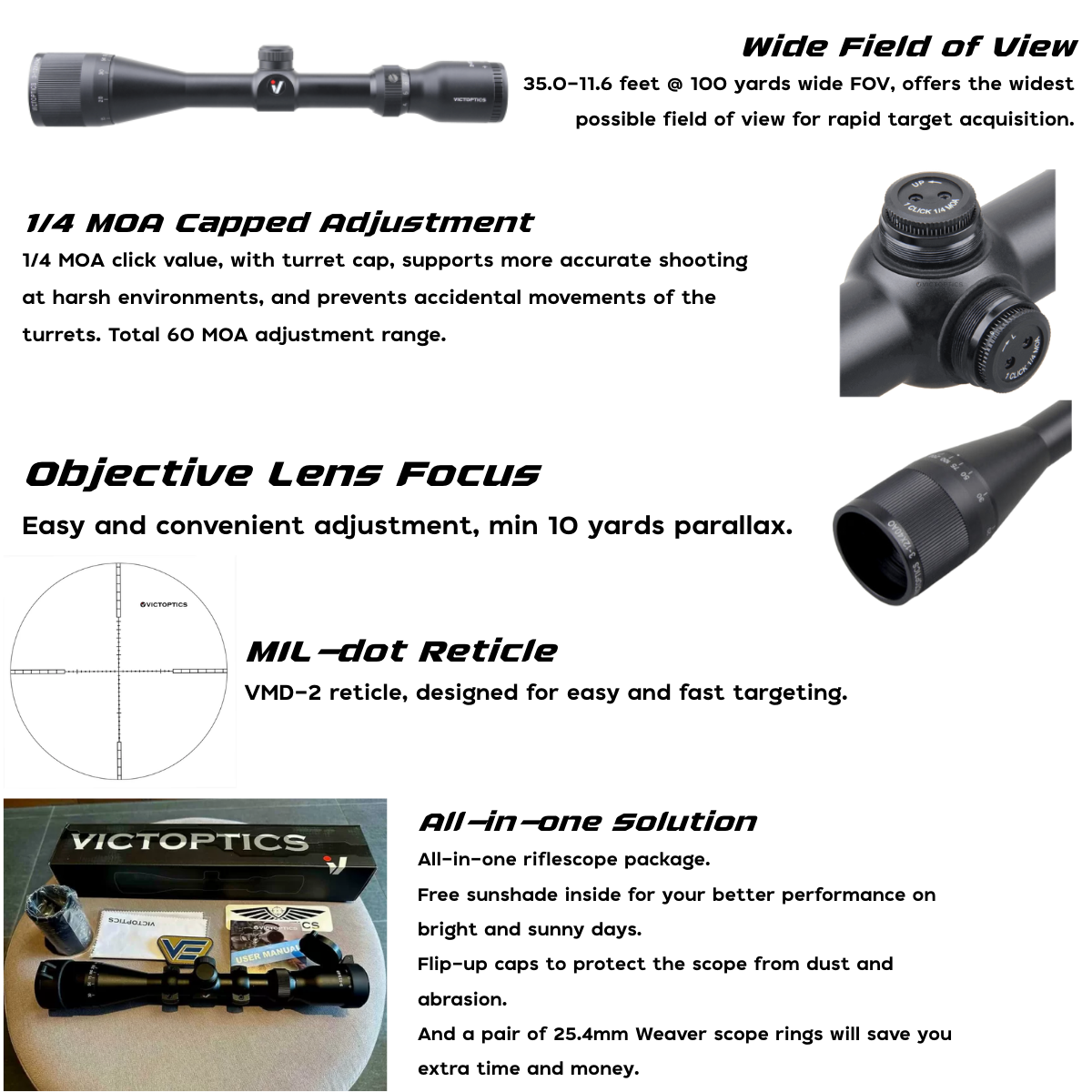 Parallax Adjustment: min at 10, 15, 20, 30, 50, 75, 100, 200 yards to infinite