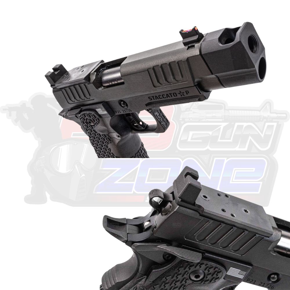 • เฟรมยิงเลเซอร์ร่องลึก 2011 ทางฝั่งซ้ายและโมเดลรุ่น STACCATO P ทางฝั่งขวา